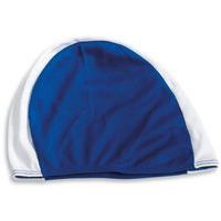 - Bonnet de natation en tissu bicolore en polyester extensible.