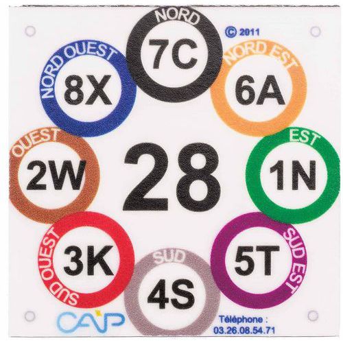Toutes les balises ont 8 cercles de couleurs à l'intérieur desquels est indiqué un code composé d'un chiffre et d'une lettre.