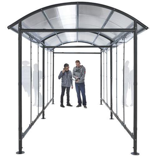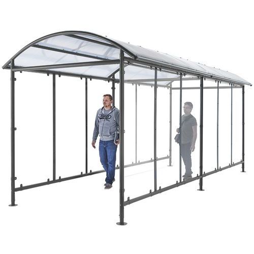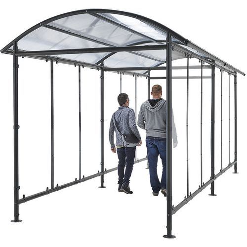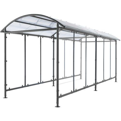 Abri avec pieds réglables en hauteur pour mise à niveau.