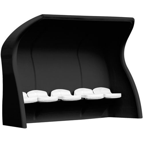 Abri de touche noir de forme originale et esthétique, sans angles saillants pour plus de sécurité. Abri et assises en composite très robustes aux intempéries et corrosion, matériel durable et anti-UV, pour une longévité exceptionnelle. Construction monobloc, sans visserie, sans montage, pose simplifiée sur dalle béton : trous prévus et chevilles de fixation livrées. Dossier individuel bas ergonomique, très confortable, couleur au choix. Couleur résistante au vieillissement naturel, gel coat teinté dans la masse, ne nécessitant aucun entretien particulier. Garantie : 10 ans contre tout vice de fabrication. Conception et fabrication française.