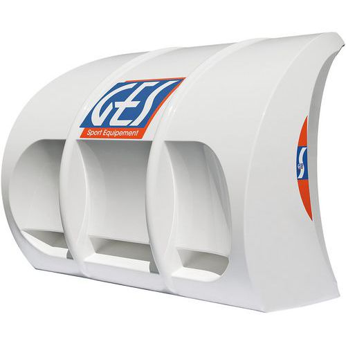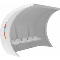 Abri de touche GES blanc fabriqué en composite, ce qui rend l'abri très robuste et exclue tout risque de rouille tout en ne nécessitant aucun entretien particulier. L'extérieur en gel coat (matériaux teinté dans la masse), insensible à l'air marin et aux organismes extérieurs, donne aux assises un aspect lisse et neuf tout au long de sa vie. Assise munie de coques en polypropylène injecté, traitées aux UV Chaque coque possède un dossier bas ce qui rend l'assise ergonomique et très confortable, couleur au choix. Dimensions : hauteur 2m , profondeur 1,40 m. Existe en 4 longueurs : longueur 1.5 m soit 3 assises, poids : 70kg longueur 2.5 m soit 5 assises, poids : 120kg longueur 4 m soit 8 assises, poids : 160kg longueur 5 m soit 10 assises, poids : 230kg Coloris de la structure : blanc. Fabrication française. Garantie 10 ans. Fabriqué en France