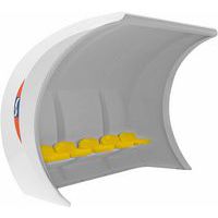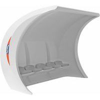 Abri de touche GES blanc fabriqué en composite, ce qui rend l'abri très robuste et exclue tout risque de rouille tout en ne nécessitant aucun entretien particulier. L'extérieur en gel coat (matériaux teinté dans la masse), insensible à l'air marin et aux organismes extérieurs, donne aux assises un aspect lisse et neuf tout au long de sa vie. Assise munie de coques en polypropylène injecté, traitées aux UV Chaque coque possède un dossier bas ce qui rend l'assise ergonomique et très confortable, couleur au choix. Dimensions : hauteur 2m , profondeur 1,40 m. Existe en 4 longueurs : longueur 1.5 m soit 3 assises, poids : 70kg longueur 2.5 m soit 5 assises, poids : 120kg longueur 4 m soit 8 assises, poids : 160kg longueur 5 m soit 10 assises, poids : 230kg Coloris de la structure : blanc. Fabrication française. Garantie 10 ans.
