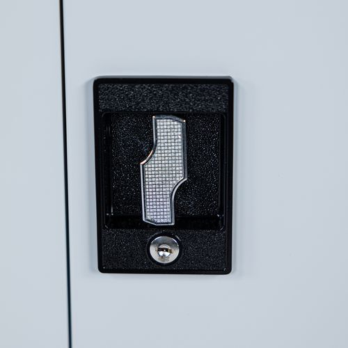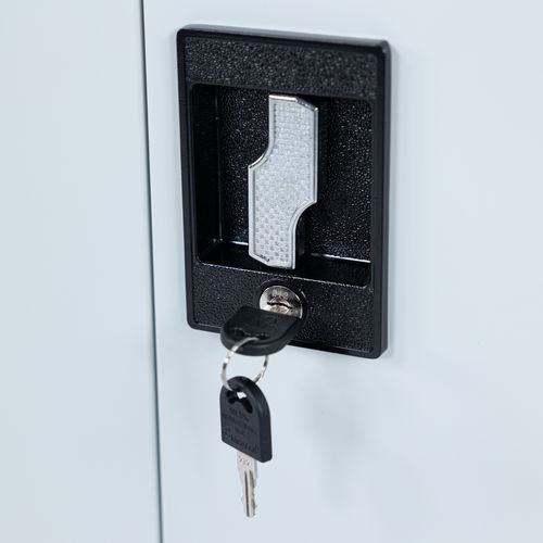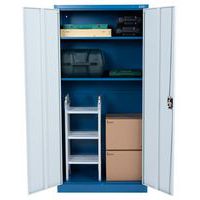 - Solide armoire d'atelier haute pour matériel et outils lourds.