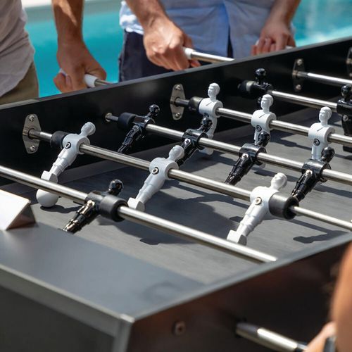De la caisse de jeu en stratifié à la visserie en inox, en passant par le bois exotique ou l aluminium, tous les matériaux ont été rigoureusement sélectionnés et testés pour s assurer de leur résistance aux intempéries, afin de vous offrir un baby-foot que vous pouvez laisser en extérieur sans la moindre crainte.