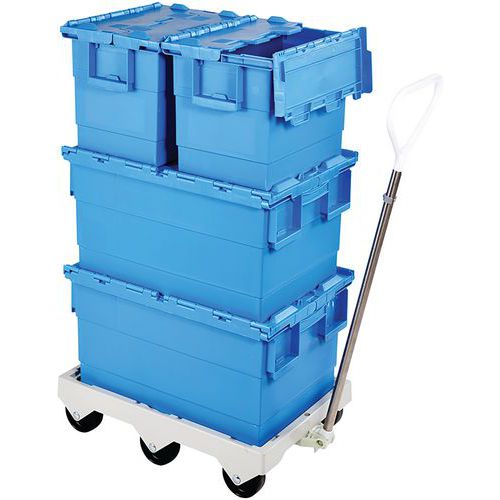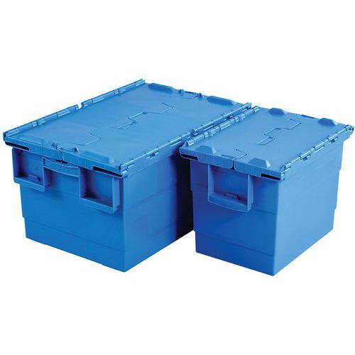 Empilable fermé et emboîtable lorsque le couvercle est ouvert.