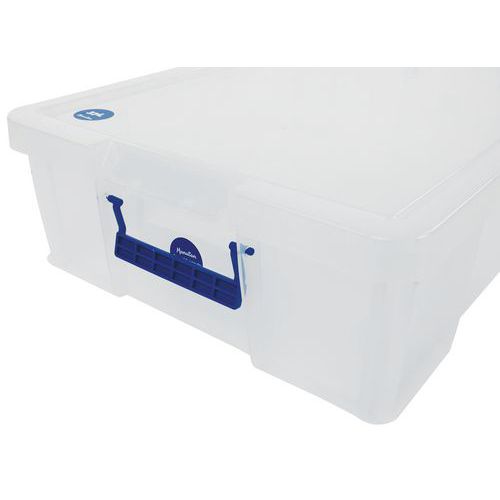 Bac de rangement solide et très stable. Pratique, le transport est facile grâce aux poignées. Reconnaissance rapide des objets à l'intérieur du bac grâce à a sa transparence.