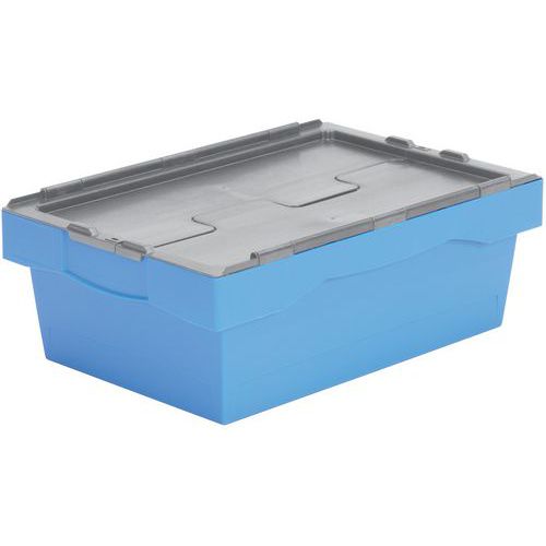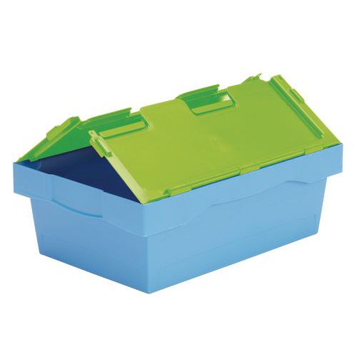 Identification flux logistiques facilitée par le coloris des couvercles. Polyvalent, adapté aux manutentions manuelles et automatisées. Sécurisation du contenu via un couvercle plombable et scellable. Bac gerbable et emboîtable à vide pour un gain de place optimal.