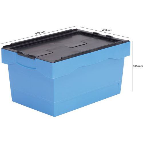Identification flux logistiques facilitée par le coloris des couvercles. Polyvalent, adapté aux manutentions manuelles et automatisées. Sécurisation du contenu via un couvercle plombable et scellable. Bac gerbable et emboîtable à vide pour un gain de place optimal.