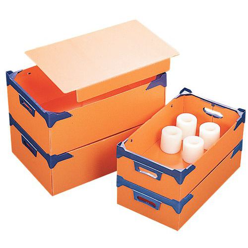 Grande robustesse grâce à ses petits côtés renforcés par profilés plastique. Manutention facilitée par poignées et guide-fourche. Plis préformés pour un montage rapide.