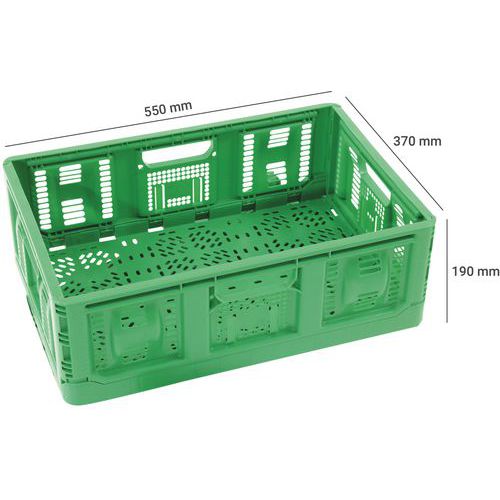 | Intitulé du produit | Bac pliant économique, Capacité: 34 L, Hauteur hors tout: 190 mm, Largeur hors tout: 370 mm |