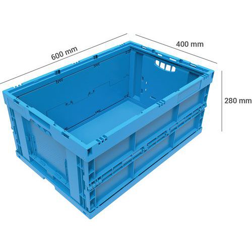 Équipé de charnières renforcées et d'un rebord sécurisé pour le gerbage.