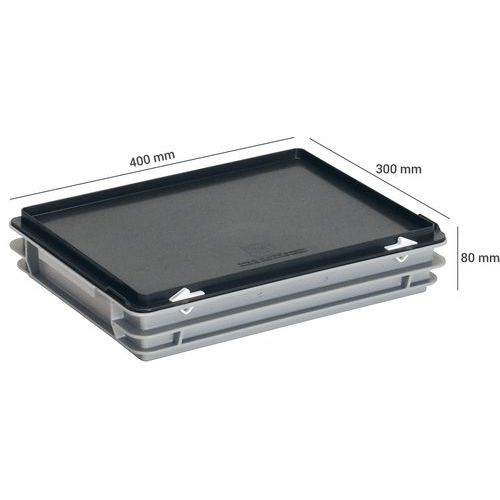 Bacs à couvercle RAKO gris, Capacité: 5 L, Gerbable: oui, Hauteur hors tout: 80 mm, Largeur hors tout: 300 mm