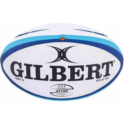 Ballon de rugby Gilbert Atom, de couleur bleu, parfaitement adapté pour les matchs en club et en milieu...