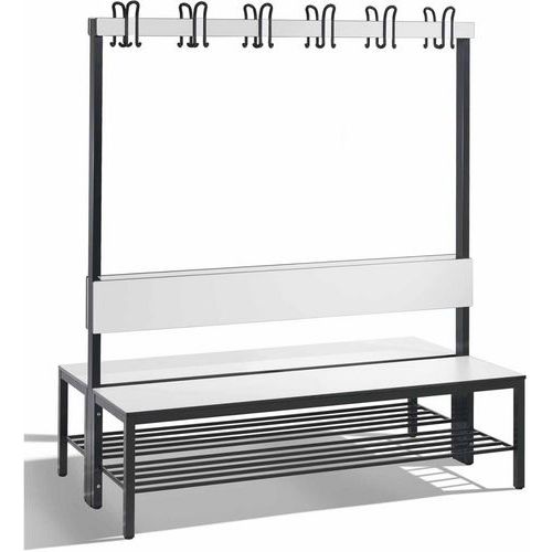 Banc double avec dossier, grille et patères, Assise matériau: Polypropylène, Nb de patères: 6