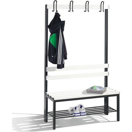 Banc patère pvc CP Simple face - Avec dossier et grille chaussures
