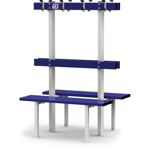Banc de vestiaire double GES, sur pied, avec assise en aluminium et patère an acier, idéal pour vos...
