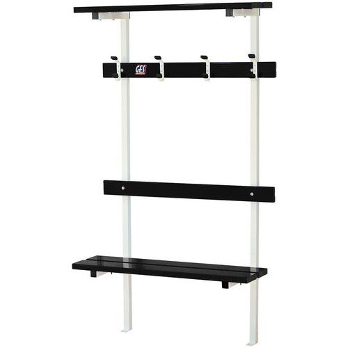 Banc de vestiaire GES, avec assise en aluminium, porte sacs et patères en acier, à fixer aux murs de vos...