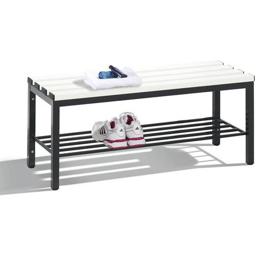 Banc vestiaire PVC avec grille chaussures CP mobilier, idéal pour vos licenciés avant et après les séances...