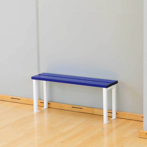 Banc de vestiaire GES, sur pied, avec assise en aluminium, pour une installation rapide dans vos gymnases.