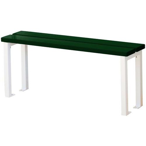 Banc de vestiaire en acier galvanisé plastifié en blanc de 35 x 35 mm avec un embout en caoutchouc noir. Monture du banc blanche. Assise en aluminium plastifiée disponible en différents coloris. Hauteur de l'assise : 43 cm. Disponible dans différentes longueurs. Origine France garanti.