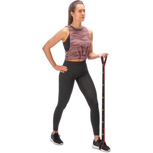 Bande élastique tissée d'une longueur de 80 cm, permet de nombreux exercices de renforcement musculaire.