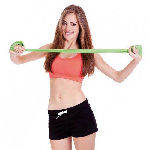 Bande latex pour effectuer des exercices de renforcement musculaire et/ou d'étirements.