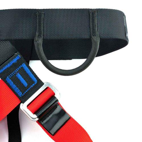 Harnais cuissard d'escalade entièrement réglable par des boucles rapides en alliage, pour plus de facilité d'utilisation en collectivités. Repère visuel par des codes couleurs de la jambe gauche (rouge) et droite (bleu), une aide précieuse pour enfiler correctement son baudrier en toute sécurité. Un sacré gain de temps pour l'enseignant ou l'éducateur spécialisé en escalade.