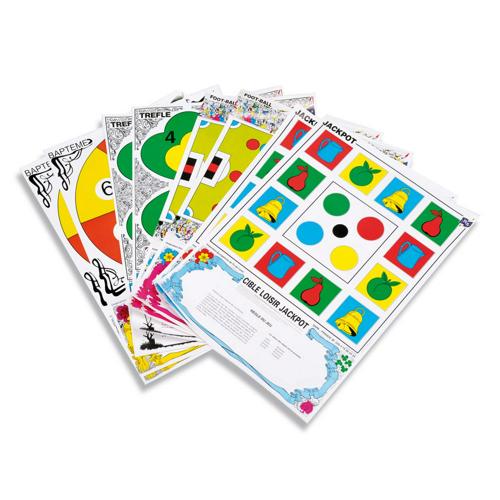 Lot de 8 blasons loisirs avec 4 jeux différents. Dimensions : 62 x 62 cm.