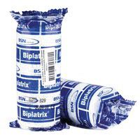 - Bande plâtrée constituée de gaze de coton blanchie enduite d'une masse de couleur bleue à base de plâtre et enroulée sur un tube plastique.