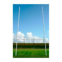 Paire de buts de rugby en aluminium profil rond diamètre 102 mm plastifiés en blanc. Poteaux en 2 parties à sceller dans des gaines ainsi qu'une barre transversale diamètre 102 mm démontable. Modèles de buts de rugby en acier sur simple demande. Origine France Garantie.