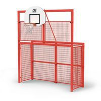 Un but en tube acier galvanisé thermolaqué Ø 102 mm. Dimensions intérieures du but : 3 x 2 m. Coloris : jaune. But certifié conforme a la norme 15312. Un fond de but et deux côtés des buts en panneaux «type caillebotis» en acier galvanisé thermolaqué, mailles 44 mm x 100 mm. Coloris : jaune. Un panneau de basket forme demi-lune, dimensions 120 x 90 cm en PEHD, monté sur une structure très robuste, déport du panneau de basket par rapport au but : 60 cm, livré avec cercle + filet. Deux panneaux «type caillebotis» en acier galvanisé thermolaqué, mailles 44 mm x 100 mm sont fixés à l'arrière du panneau de basket. Montage sur bagues aluminium avec système de réduction de bruit. Scellement sur platine. But certifié conforme au code du sport. Une notice de montage détaillée est fournie avec le matériel.
