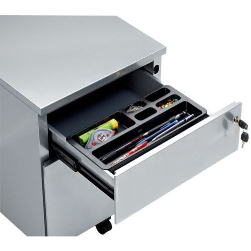 - Le caisson avec 2 tiroirs, dispose d'une 5 ème roulettes centrale.