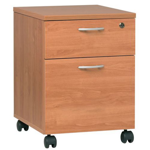 Caisson avec tiroirs en panneaux de particules surfacés mélaminés. Mobilier équipé de roulettes anti-basculement. Verrouillage avec serrure à cylindre (1 seul tiroir). Un programme efficace et robuste d’une installation aisée