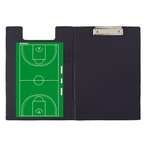 Face intérieure effaçable avec tracé terrain de basket effaçable + face intérieure avec un clip pour maintenir des feuillets.
