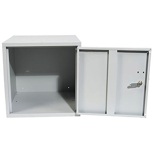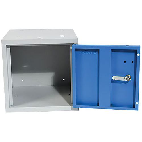 Vestiaire cubique prépercé à assembler. Fermeture à clé par serrure cylindrique. Case avec emplacement porte-étiquettes. Confortable avec ouverture porte à 180°.