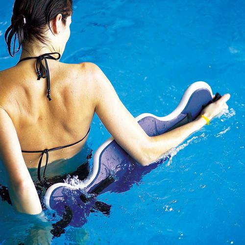 Ceinture à flotteurs monobloc assurant la tenue verticale dans l'eau.
