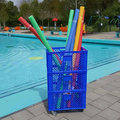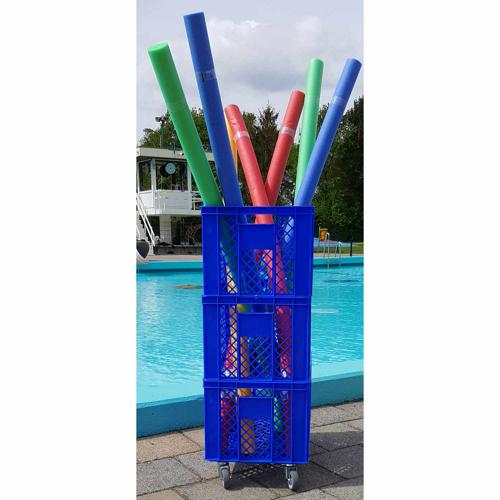 Il est pourvu de roues pivotantes. Ses parois et ses fonds ajourés permettent le séchage rapide du matériel.