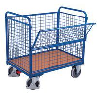 - Chariot ergonomique à parois grillagées et 1/2 panneau rabattable, châssis mécano-soudé avec profilé L innovant.