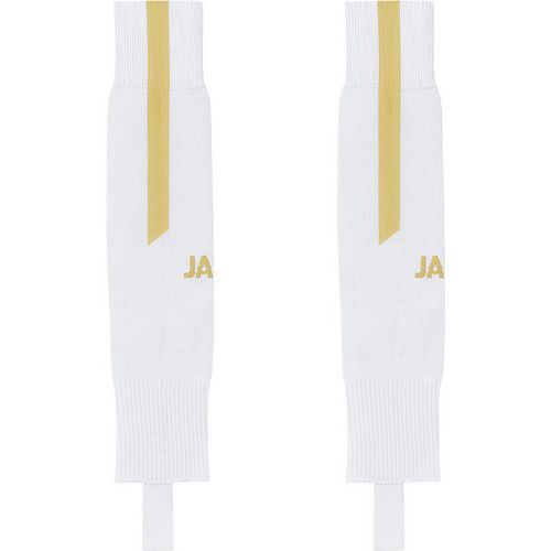 Chaussettes de football sans pied Jako, de couleur blanc et or, idéales pour les matchs de foot.