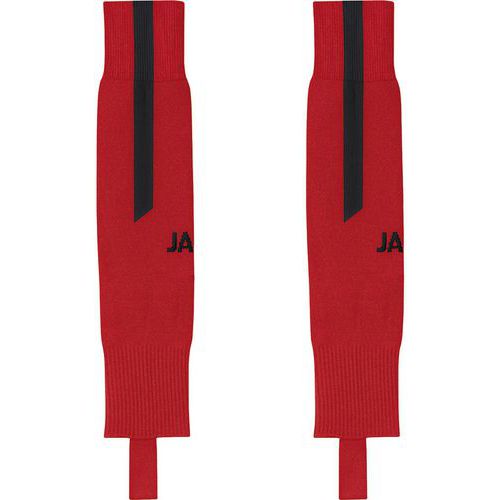 Chaussettes de football sans pied Jako, de couleur rouge et noir, idéales pour les matchs de foot.