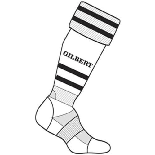Chaussettes training Gilbert, de couleur blanc/noir, idéales pour compléter vos tenues de matchs.