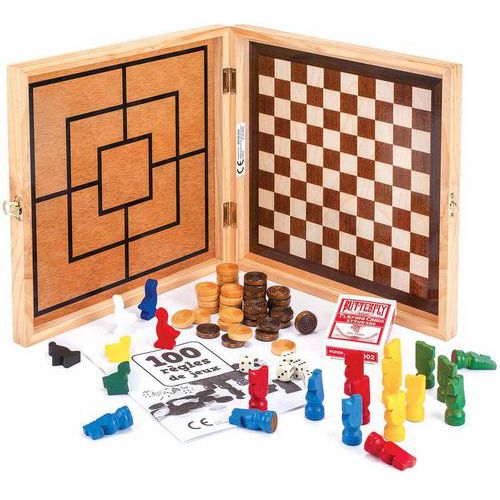 | Intitulé du produit | Coffret bois 100 jeux classiques, Longueur: 30 cm, Largeur: 30 cm, Nb de pièces: 100, Coloris: Multicolore |