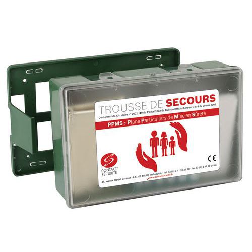 | Intitulé du produit | Coffret de secours PPMS, Coloris: Vert, Modèle: PPMS, Contenance: 4 L, Largeur hors tout: 29 cm |
