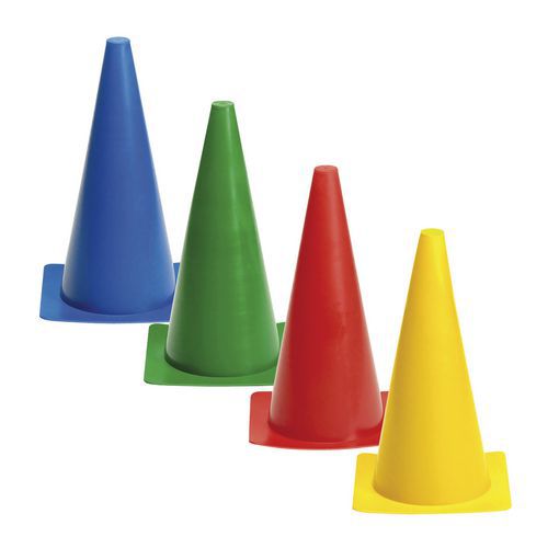 Cône en polyéthylène très robuste. Plot à base carrée pour une meilleure stabilité. Coloris au choix. Fabriqué en UE