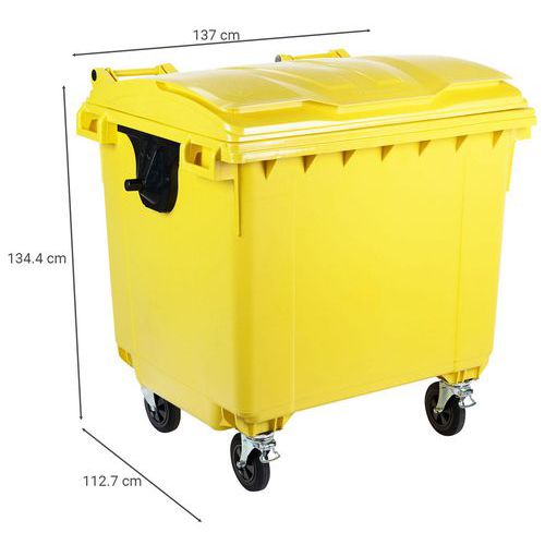 Conteneur à déchet, Capacité: 1100 L, Ouverture: Frontale, Matériau: Plastique