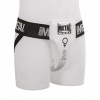 Coquille pour femme Métal Boxe, de couleur blanche, idéale pour protéger vos parties intimes de tout choc.