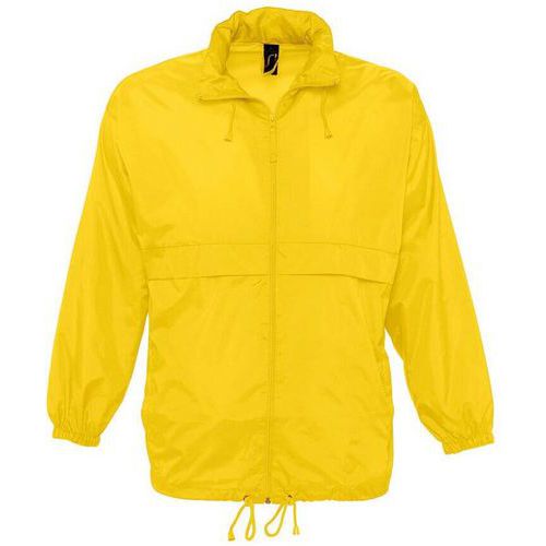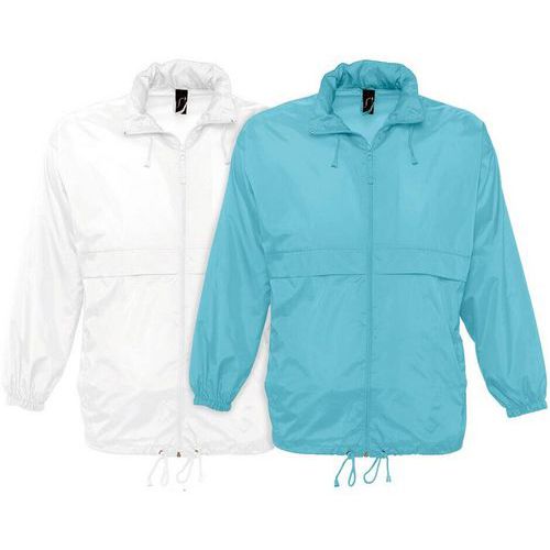 Veste coupe-vent imperméable : tissu waterproof de protection contre la pluie et windproof de protection contre le vent. Oeillets d'aération pour une meilleure respirabilité de la veste. 2 poches zippées pour garder vos petits objets, en toute sécurité, à portée de main. Système inbag : se plie et se range dans une poche munie d'une ceinture élastique. Ceinture élastique avec clip et cordon de serrage en bas de la veste pour un maximum de maintien.