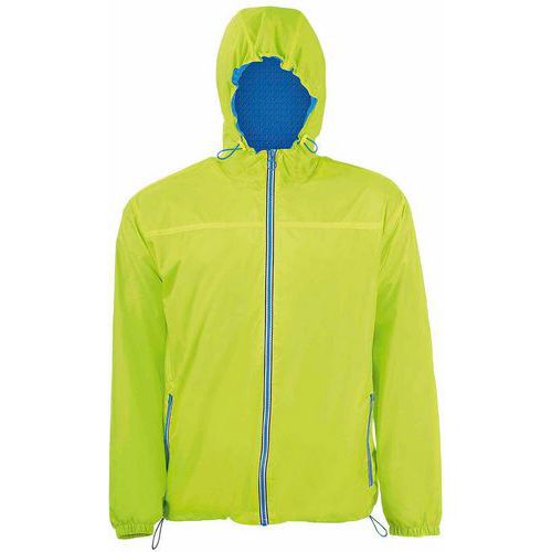 Coupe-vent doublé jersey, de couleur lime fluo/royal, pour une protection optimale par mauvais temps.