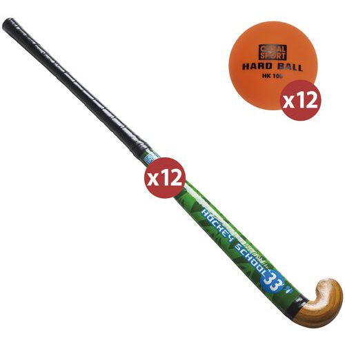 12 crosses de hockey en bois de mûrier avec manches 5 plis et grip PVC. Lot livré avec 12 balles offertes...