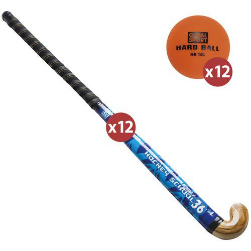 12 crosses de hockey en bois de mûrier avec manches 5 plis et grip PVC. Lot livré avec 12 balles offertes...